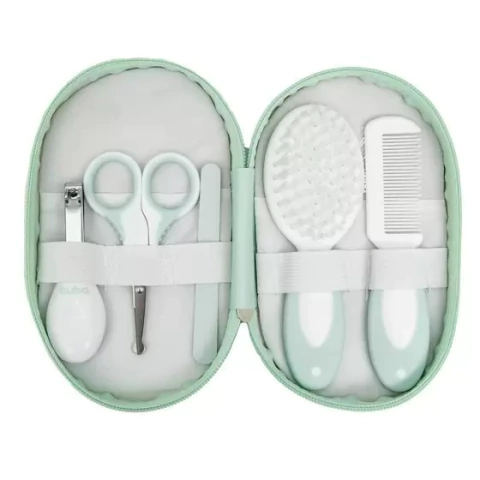 A preocupação com o bem-estar do bebê começa logo nos primeiros dias de vida. Pensando no conforto do pequeno e na tranquilidade dos pais, a Buba desenvolveu uma linha especial para cuidar com delicadeza e segurança da saúde dos pequenos. O Kit Cuidados com Estojo possui uma pequena tesoura de unhas com pontas arredondadas, cortador, pente, escova e lixas em um estojo super prático para armazenar e transportar em viagens.